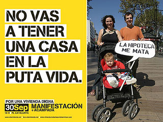 “A call for the World Record we set for the most people shouting, “You’ll never own a house in your whole fucking life” (sadly, Guinness wouldn’t recognize our feat). An event that gathered hundreds and hundreds of people in cities all over Spain to shout, collectively and publicly, what had been experienced until that moment as a personal problem.”