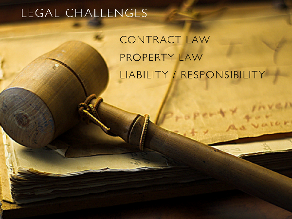 These characteristics make them extremely difficult to regulate because there is no single entity which has control over them. In addition, given the self-enforcing properties of their code, they might actually challenge some of the most basic principles of our legal system. In fact, there are many legal challenges raised by Ethereum, but I will focus here only on the three that seem most interesting to me.