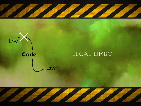 So, we find ourselves in a state of legal limbo, as we cannot rely on traditional legal means to regulate the code of this technology. The question is: do we actually need to?