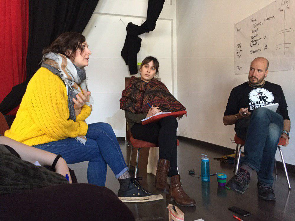 By the Quarterly Evaluation in January, coinciding with the end of the new members’ first stage of the Dating Phase, a fantastic rapport and overwhelmingly positive (cyber)atmosphere had been established within the group. It was clear that the team had to gather in person to solidify relationships, continue establishing group culture and discuss important issues facing the collective. Simply put, we needed a chance to hang out and bond, and a grant awarded by Guerrilla Foundation allowed us to do just that.