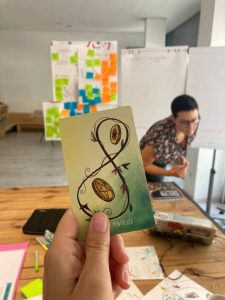 On our final day, we had the privilege of being hosted by Ela Kagel at Supermarkt, a wonderful community space in Kreuzberg dedicated to digital culture, collaborative economies and new forms of work. This day was dedicated to discussing money and finances, and appropriately the Two of Pentacles, from The Spacious Tarot, was the card drawn at the beginning of the meeting. It reminds us of the balance and stability that must be maintained right after seeds have been planted, the care that must be given to small, daily details when working towards a big and meaningful goal. Right on point for our agenda.