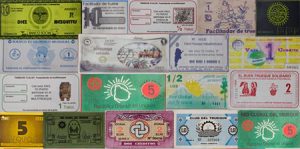 Quizás, el mejor ejemplo a largo plazo de un intercambio de compensación de crédito sea la Cooperativa-círculo económico WIR[1]. Creada como organización de auto-ayuda en Suiza y en medio de la Gran Depresión de 1929, WIR provee un medio para que sus asociados puedan seguir comprando y vendiendo entre ellos, independientemente de que haya una escasez de francos suizos en circulación. Durante los últimos tres cuartos de siglo a través de épocas buenas y malas, WIR (ahora conocida como el Banco WIR) ha continuado prosperando. Sus más de 60,000 miembros a lo largo de Suiza intercambian aproximadamente 2.000 millones de dólares en bienes y servicios todos los años, pagándose entre ellos no con dinero oficial suizo, sino con sus propias unidades de contabilidad, los créditos WIR.