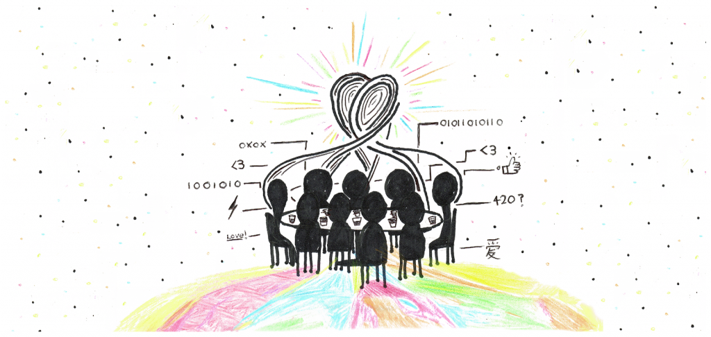 Mary, Mix, Chelsea, y yo. La panda de cooperativistas de Loomio en modo super-feliz
