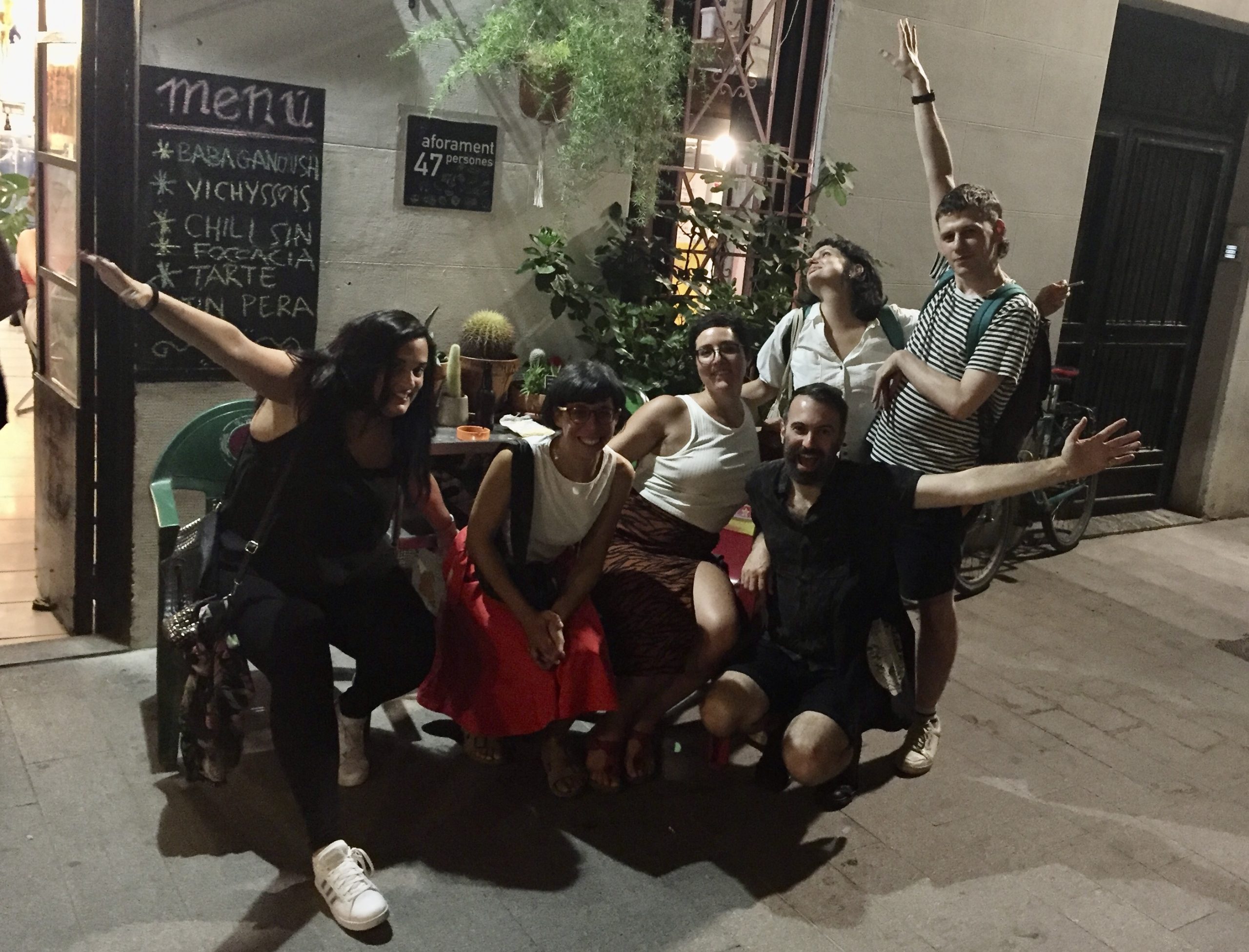 Esa noche cenamos en la Mandrágora, una asociación cultural y gastronómica vegana que esgrime con orgullo los principios de antiespecismo, transfeminismo y anticapitalismo. En este cálido espacio colectivo vivimos uno de los episodios más emotivos de nuestro encuentro, cuando conocimos en persona (tras muchos años de colaboración virtual) a nuestra maravillosa diseñadora gráfica Mireia, cofundadora del proyecto Makea tu Vida y artífice de nuestra nueva y flamante página web. A pesar de ser la primera vez que nos mirábamos a los ojos sin una pantalla de por medio, parecía como si nos conociésemos de toda la vida.